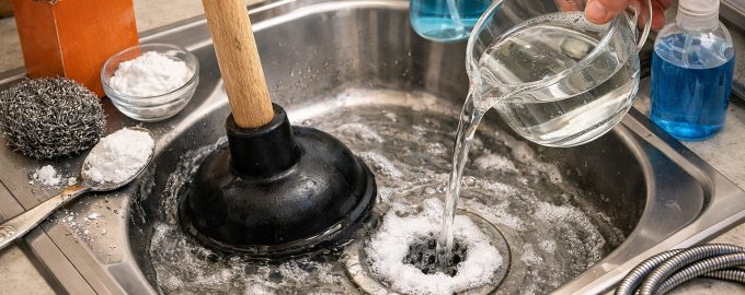 Szóda és ecet. A klasszikus kémiai reakció egy lúg és egy sav között tökéletesen feloldja a lúgot. szerves lerakódások. A lefolyóba öntsünk fél csésze szódabikarbónát, öntsünk ugyanennyi ecetet, és zárjuk le a lyukat egy dugóval 15-20 percre.